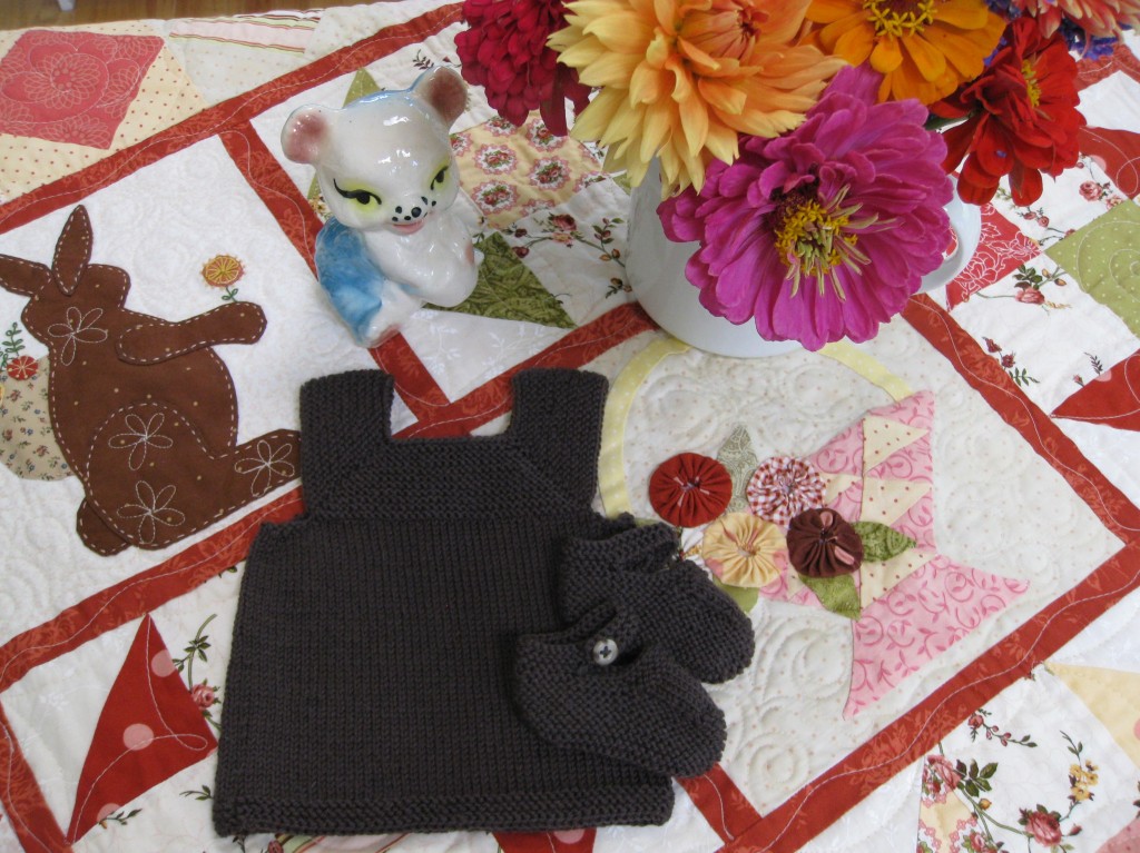 Knitting the vest without the addition garter stitch portion below the armholes did the trick. These are being packed and shipped off to dear procreating friends!