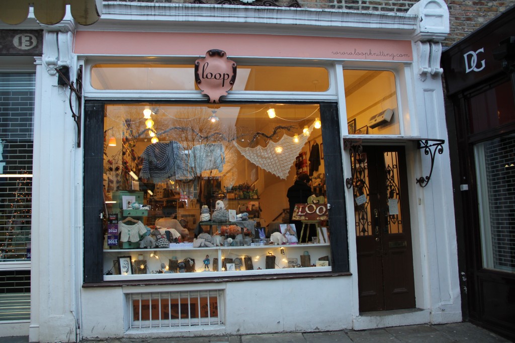 Oh, oh, oh, I was in the most glorious yarn shop today. Loop Knit Lounge, located in London’s borough of Islington, was a complete delight, from top to bottom. Charming and helpful staff (co-owner Susan Cropper was behind the counter), the most glorious selection of yarn imaginable, books, magazines and lovely gifts – I could have stayed in the shop for hours, slowly moving from one spot of inspiration to the next. It was absolutely worth every single tube station change I made to get there and get back.