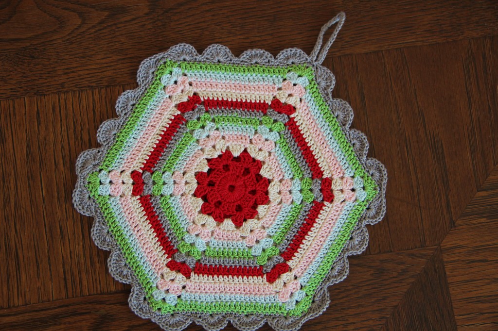 free vintage crochet climbing trellis hexagon pot holder pattern