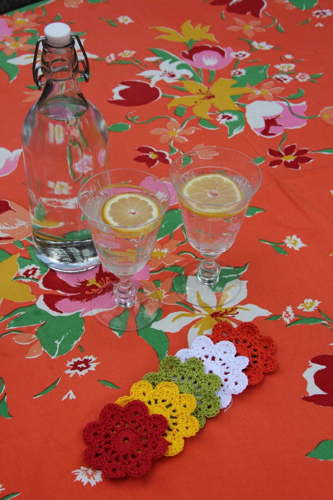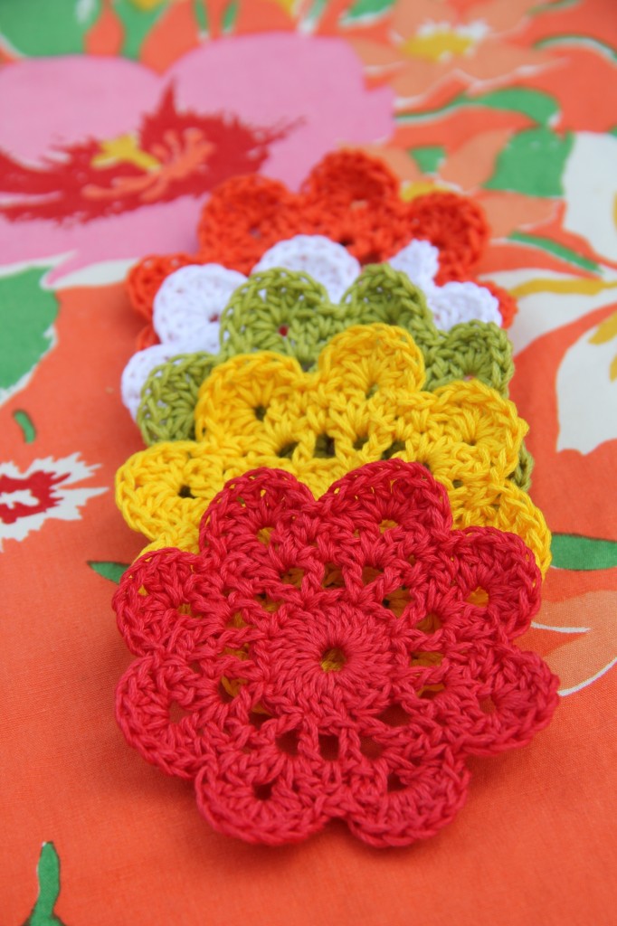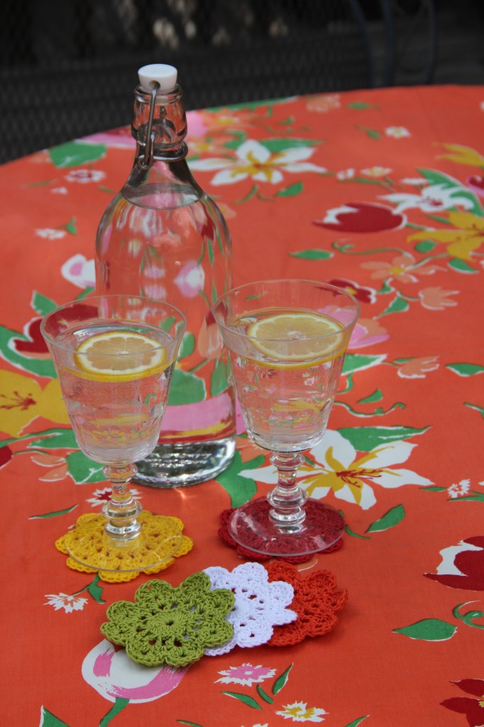 These cute coasters are a super quick crochet project. They’re also a great housewarming or bridal shower gift. Free pattern here. Yarn info on my Ravelry project page.