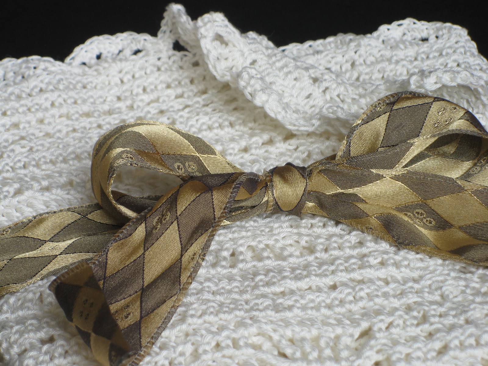 I recently designed a crochet edging that looks kind of like eyelet lace. When I was trying to find a crochet pattern to edge my robe, I came across these laces available from the famous Britex Fabric shop in San Fransisco. Aren’t they gorgeous?