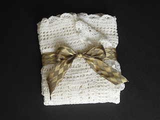 To help raise a little bit of money I’ve crocheted this heirloom baby blanket that they will list on their silent auction. Every $10, $20, $50, or $100 (or more!) donation really helps the Truax family reach their goal of providing a home and family for these children. Hopefully people bidding on the blanket will help them reach their fundraising goals a little bit sooner.