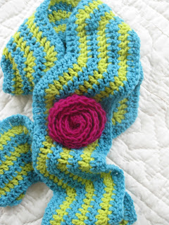 We will now be holding the class on Thursday October 4, 11, and 18 from 7:30 to 9:00 pm. The cost will be $45, which includes this charming AND functional muslin project bag (the cost of the class also includes wool yarn to crochet a flower and detailed instructions for crocheting the chevron stripe scarf)!