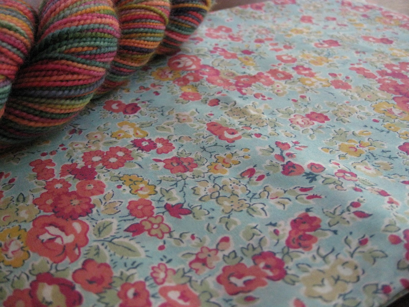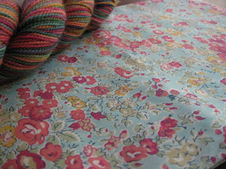 A dear friend gave me the loveliest thank you gift on Monday. It was WAY too generous, and completely unnecessary, but I am tickled beyond words! The silky soft Liberty of London fabric and the Koigu 100% Merino Wool fingering yarn purchased from Purl Soho in NYC are stunningly beautiful and I am all a-twitter with anticipation and delight at what to make with them!