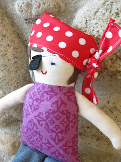 A friend’s sweet little boy turned four last month and I made a pirate doll for him.It was so fun to make!Made from the free Black Apple Doll pattern. -